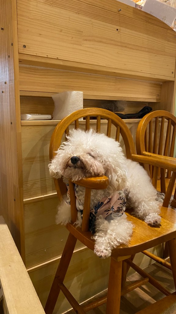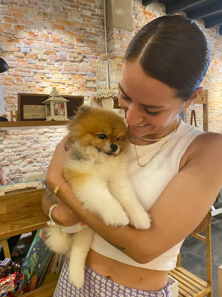 On our visits, there were three puppies and two cat’s roaming around upstairs. The dogs are kept in a small area sectioned off from the rest of the cafe, so you don’t have to sit with them if you don’t want to. There is a couple of tables within the sectioned off area if it is of interest, and treats available to feed the dogs. You can also just step into the area without actually sitting there for a quick cuddle too. Overall – very cute.